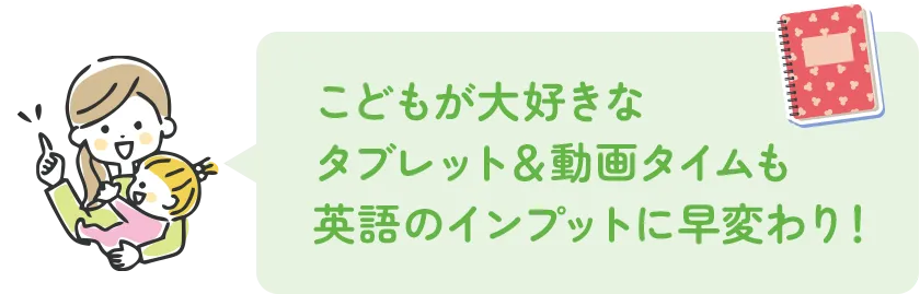 • 1日30分の掛け流し習慣で、自然と英語が身につくから親の英語力は一切必要なし!