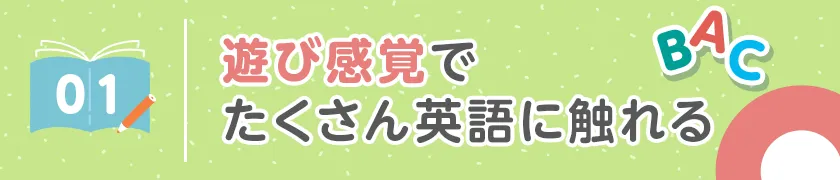 楽しいリズムの英語の歌を聴いたり、映像を見たり…遊びの延長として触れるといつの間にか英語のシャワーを大量に浴びることができます。