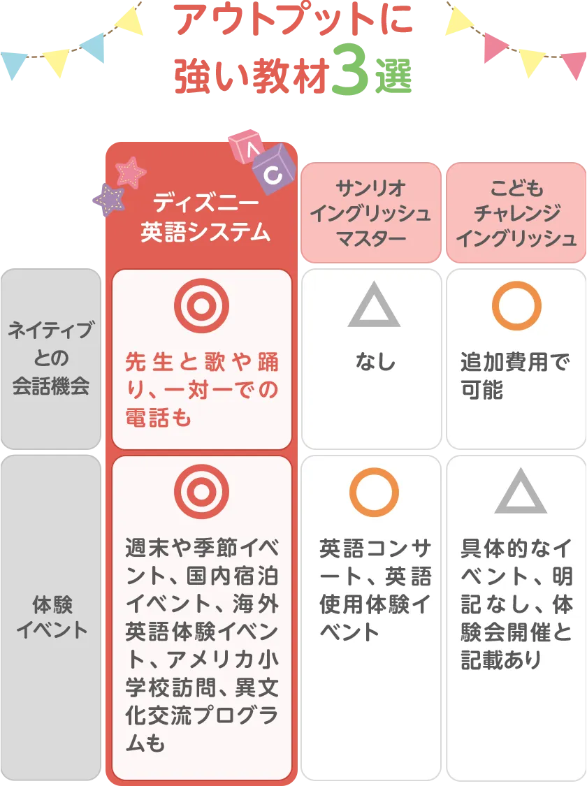 • インプットだけでなくイベント等を通じてアウトプットできる機会を提供。子どもの英語力をぐんぐん育てる