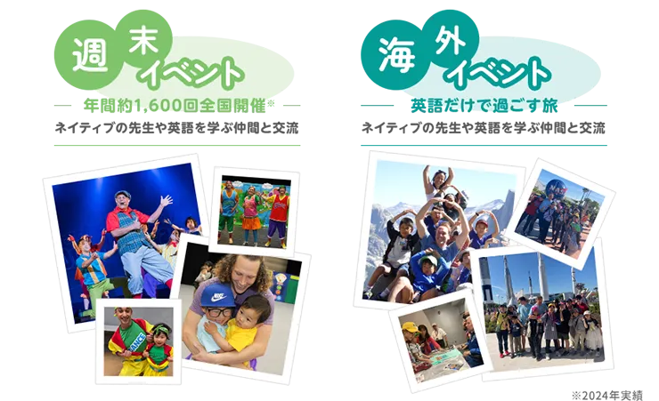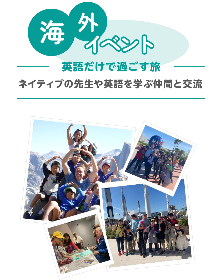 ・体験イベントとして会員は週末英語イベント、海外や宿泊イベントに参加可能(参加費別途)