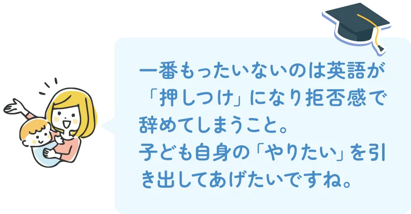 幼少期から家庭でバイリンガル環境を作れる「おうち英語」は、少ない負担で習得できる圧倒的に有利な方法です。